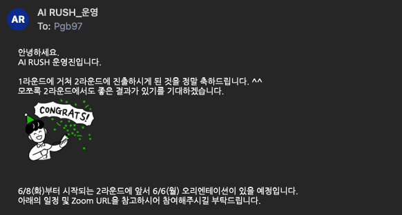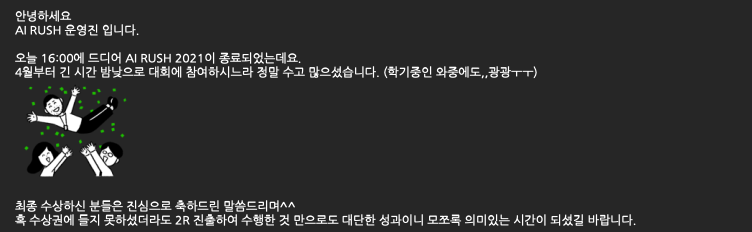 공부를 확실히 해서 내년 AI Rush에서는 꼭!!! 수상권으로 들 수 있기를 빌며