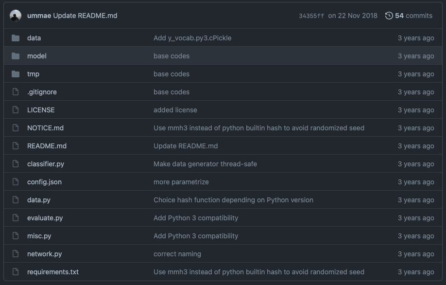 실제로 model 폴더에 들어가면 아무것도 없습니다만 AI Rush에서는 각 담당 PM분들이 만들어둔 베이스라인 모델이 있었습니다. 그래서 깃 리포지토리에 있는 것처럼 실행을 하면 코드가 알아서 수행이됩니다. 물론 AI Rush에서는 더 정형화된 방식으로 진행을 했습니다. 다양한 하이퍼 파라미터의 조정은 shell script상에서 옵션을 통해 조절하는 방식도 가능했습니다. 물론 베이스라인 코드를 작성하신 PM분들의 스타일에 따라 전달방식은 차이가 있었습니다.