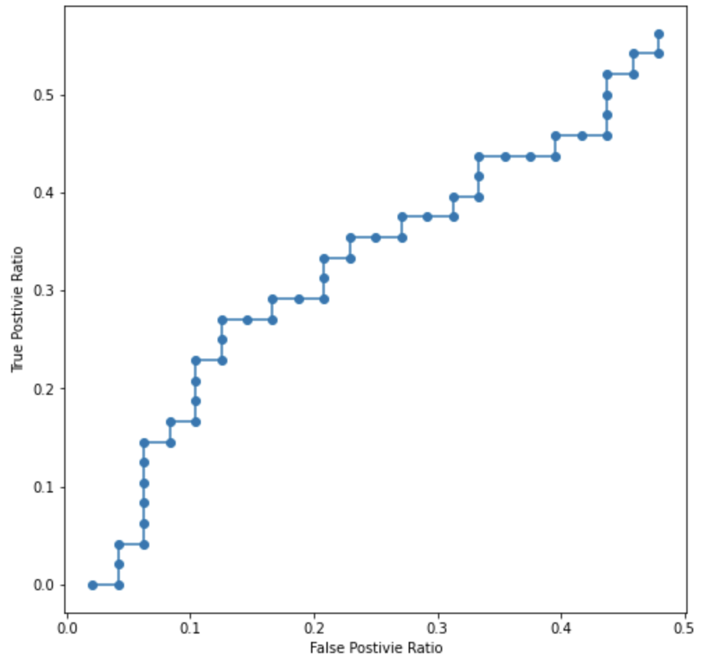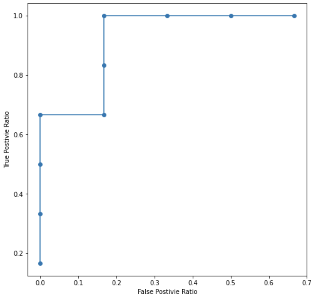 - ROC curve 밑부분의 면적값을 AUROC라고 함
