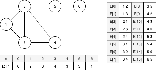 간선 리스트방식은 말 그대로 모든 간선의 종류를 저장하는 방식이다. 각 정점의 차수를 저장하는 배열이 존재하고 각 간선을 저장하는 배열도 존재하게 된다. 이 방식을 잘 활용하지 않는 이유는 우선적으로 다른 두 방식에 비해서 메리트가 떨어지기 때문이다.