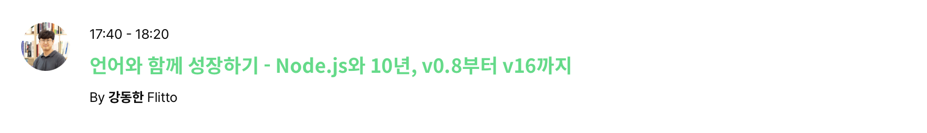 다른 세션들도 좋았지만 제가 백엔드 API를 개발할 때 보통 Node.js를 많이 사용하기 때문에 Node.js와 관련된 내용을 선택했습니다. Node.js를 확실히 스타트업단계에서는 많이 사용하는 경향이 있었습니다. 스프링에 비해 빠른 러닝커브를 갖고 있기 때문이 아닐까 생각합니다. Flitto의 개발자이신 강동한님께서도 이런 말을 해주셨습니다.