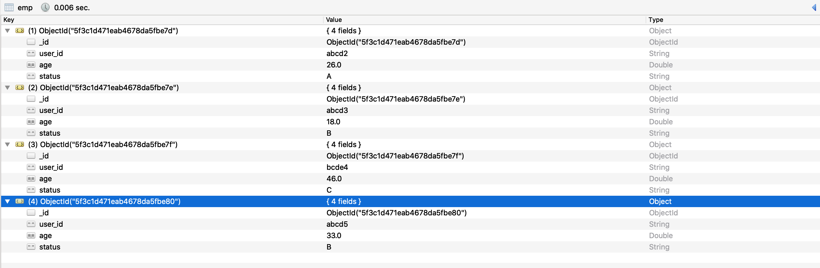 역시나 RDBMS에서 사용하는 방식과는 꽤 많이 다르다. 사실 document를 읽는 문법은 RDBMS보다 직관력이 많이 떨어지고 손이 많이 간다고 생각된다. 이유는 비교 문법때문인데, 같은 탐색문을 이번에도 적어보겠다.
