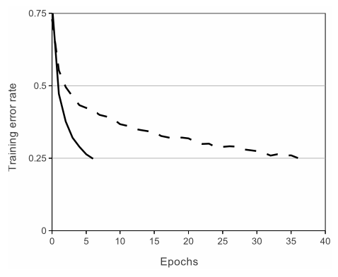 - 결과적으로 $\tanh$보다 몇 배 더 빠른 속도로 loss가 수렴
