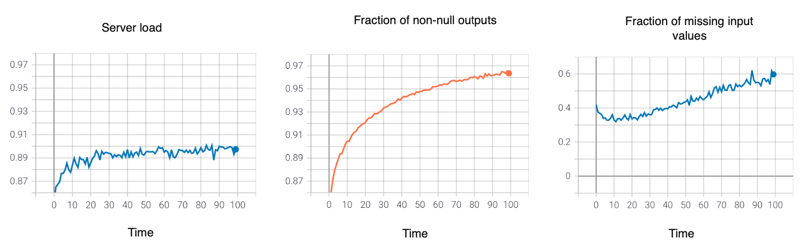 - 모니터링 dashboard에는 server load, non-null output, missing input 등의 정보를 보여줌