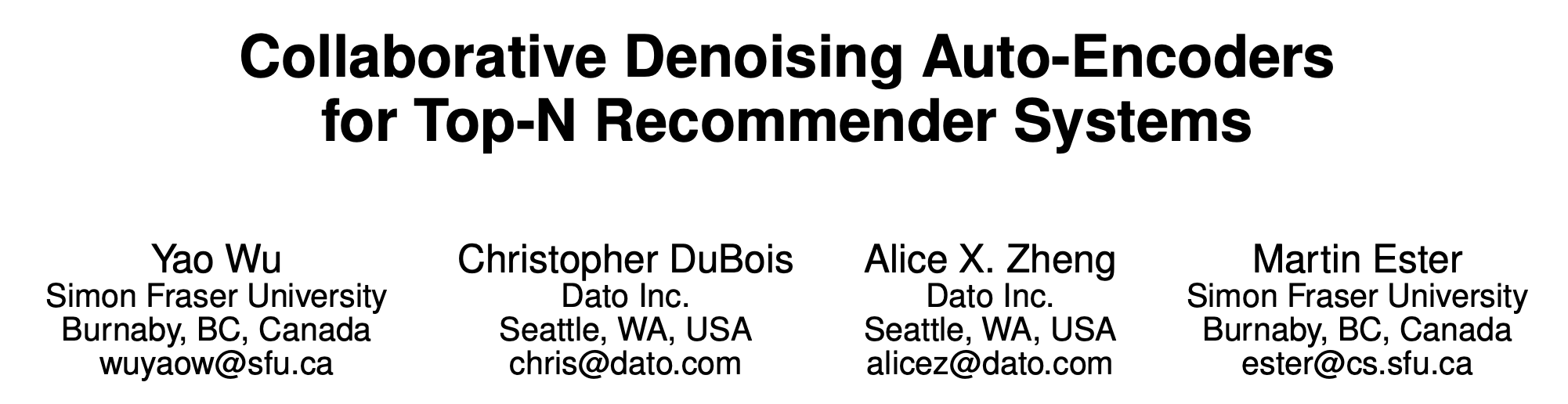 - Paper : Collaborative Denoising Auto-Encoders for Top-N Recommender Systems
