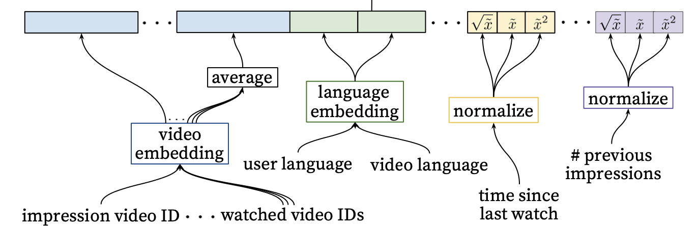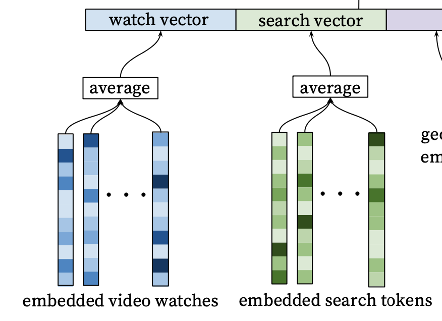 - 과거의 시청 이력과 검색 이력을 임베딩하여 vector 형성