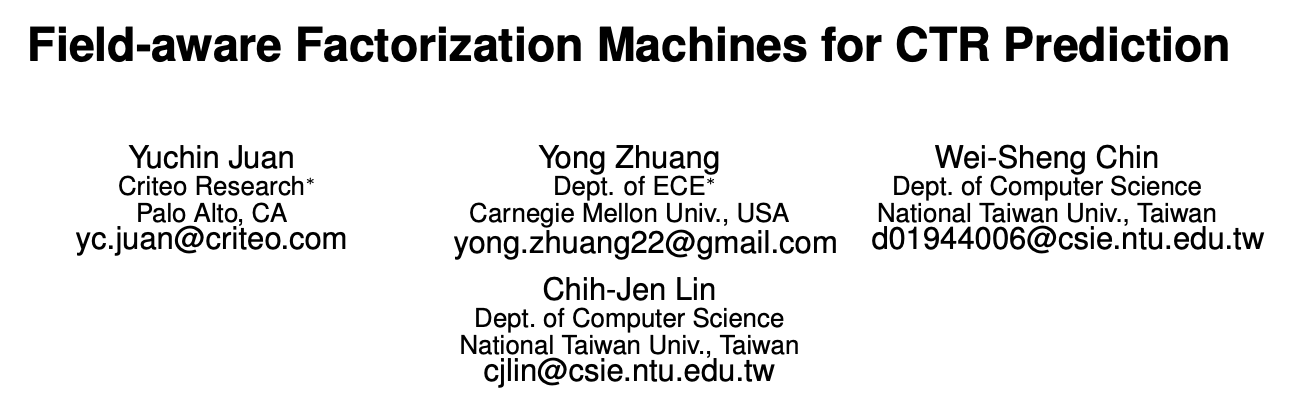 - FM이 예측 문제라는 범용성을 확대한 상황에서 CTR 예측에 좋은 성능을 보임