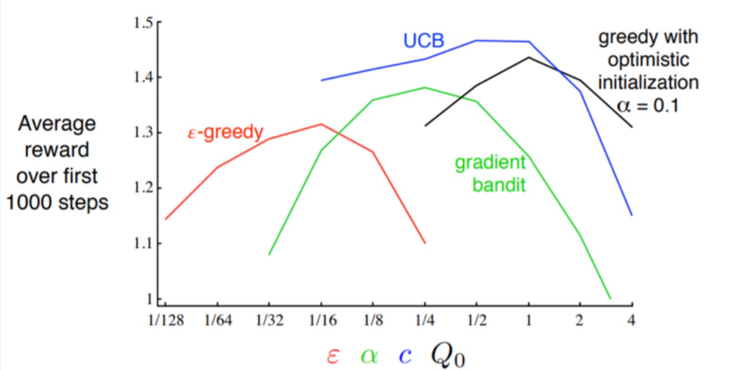 - 실제로 UCB가 전반적으로 좋은 성능을 보이나 실제로는 적절한 exploration과 exploitation의 균형을 이루는 것이 중요