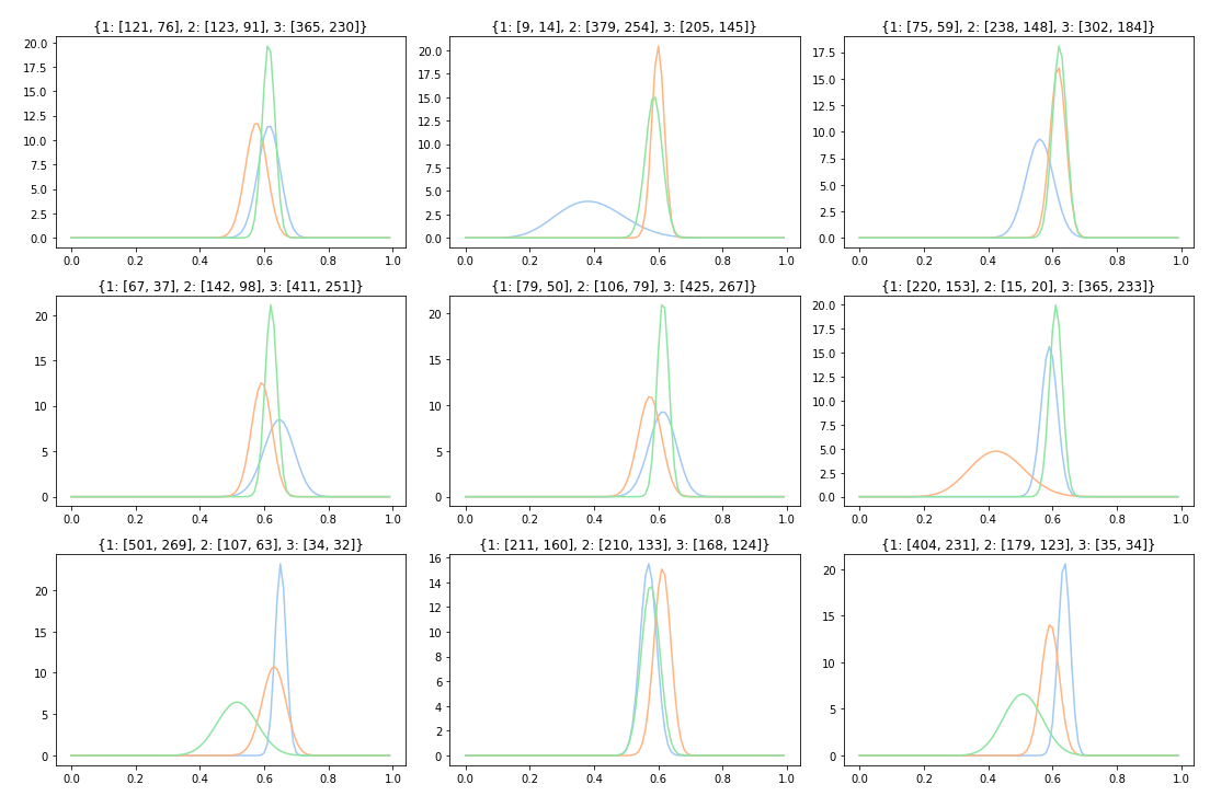 - 총 9번의 케이스를 1000회 노출을 진행한 후 각 아이템별 베타분포