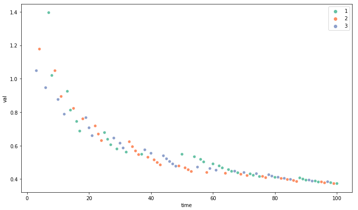 슬롯이 3개인 상황에서 랜덤으로 슬롯머신을 추출하여 추가된 항의 변화 그래프