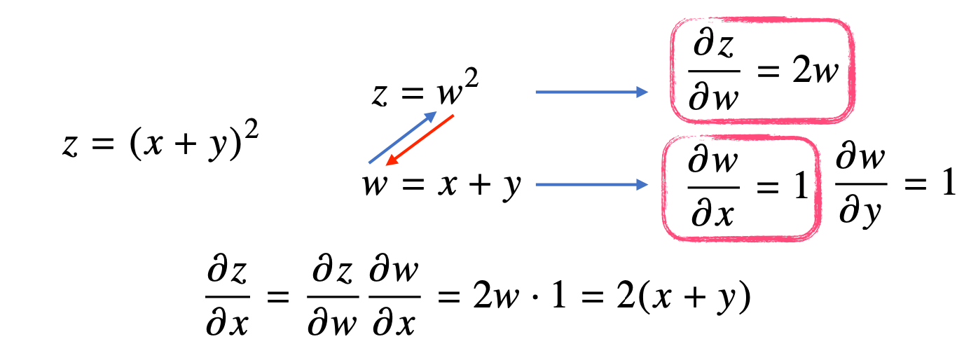 - 편미분의 연쇄법칙 원리에의해 이전 층의 gradient값이 필요하다.